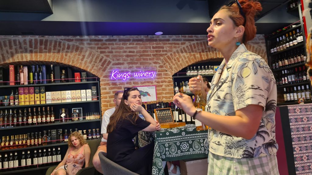 Kolejnym punktem programu była degustacja wina. Mieliśmy możliwość zapoznać się z 4 z ponad 200 szczepów gruzińskich win.