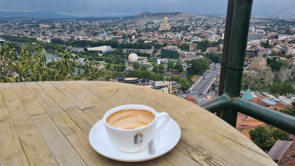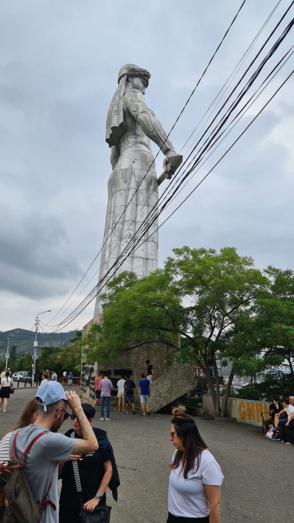 Wjechaliśmy kolejką pod pomnik Matki Gruzji. Ma ona bardzo bogatą symbolikę, trzyma w jednej ręce wino, a w drugiej miecz. Patrzy w stronę Rosji. Reprezentuje silną, ale też zmienną kobietę, która zareaguje adekwatnie: albo gościnnie, albo walecznie.
