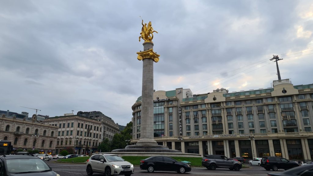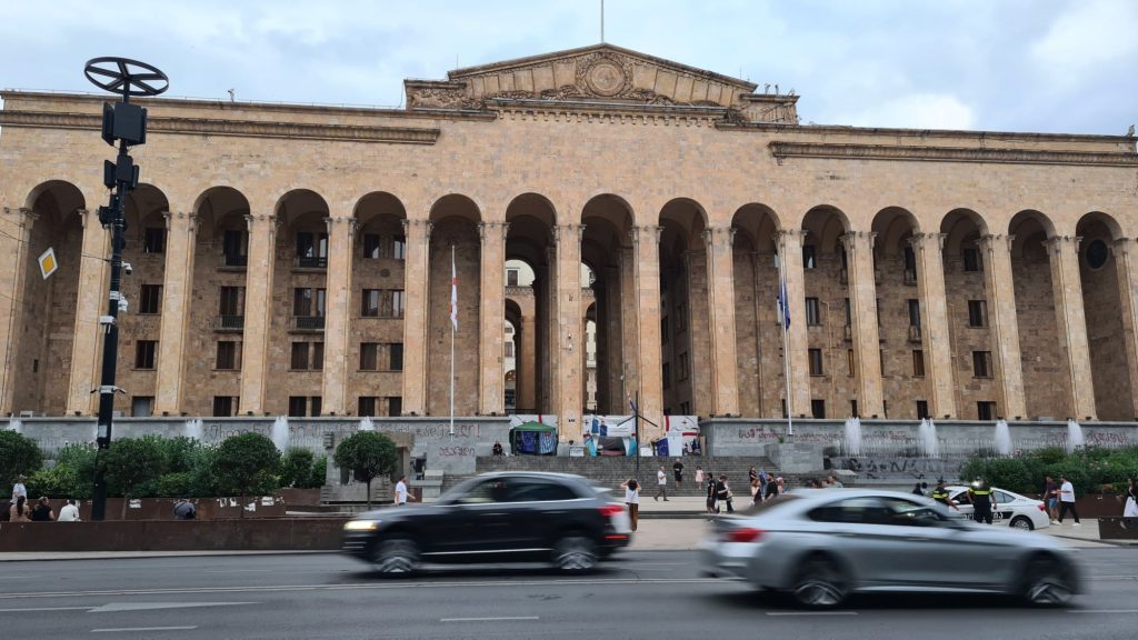 Kawałek dalej był gruziński parlament, gdzie kilka godzin później odbywał się protest antyrządowy. Protesty trwają tu już prawie od roku w związku z podejrzeniem sfałszowania wyborów parlamentarnych w 2024 oraz zawieszenia procesu akcesyjnego do UE.