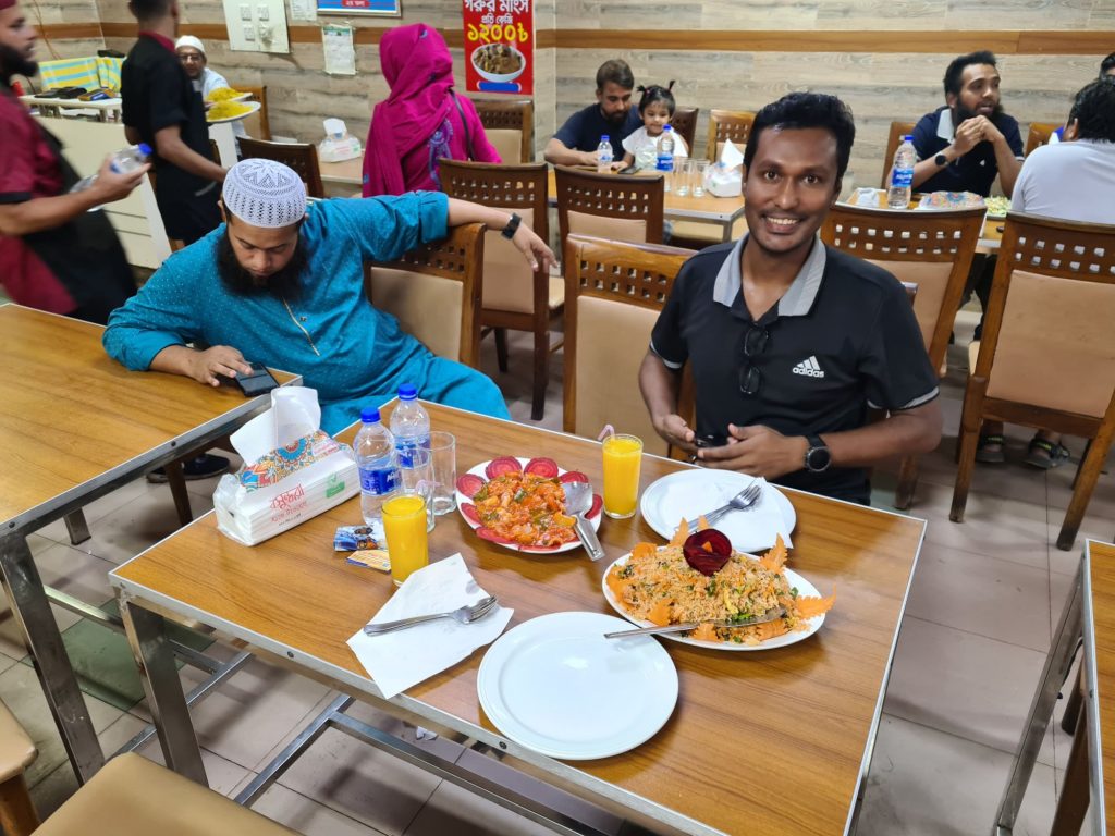 W międzyczasie pojechaliśmy do restauracji coś zjeść. Dojechal też Sony. Jeden hinduista, drugi islamista:). Po wspólnej dyskusji i rozmowie z organizatorem wycieczki z Khulna, zostało ustalone, że mogę jechać pociągiem, bo będzie bezpiecznie i pojawił się ostatni bilet. Sony kupił mi go, ponieważ obcokrajowiec niebardzo ma możliwość zakupu takiego biletu… nie wiem, dlaczego. Uff, temat został ogarnięty!