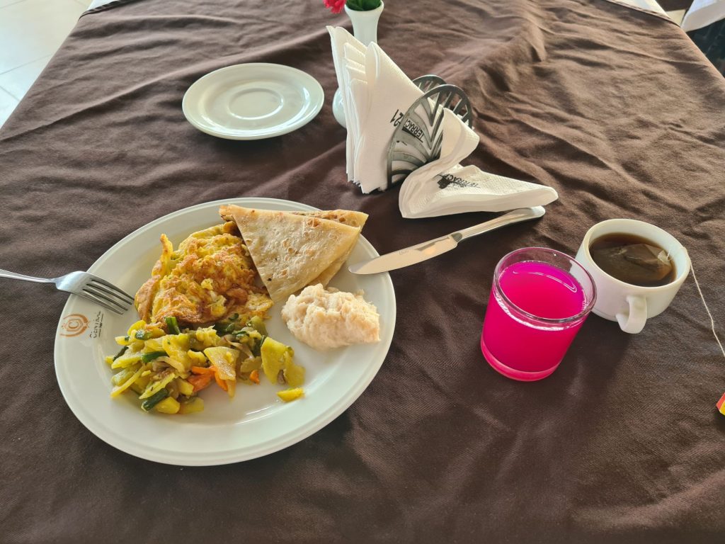Dzień oczywiście rozpocząłem śniadaniem w hotelu. Niby szwedzki stół, ale bardzo ubogi.
