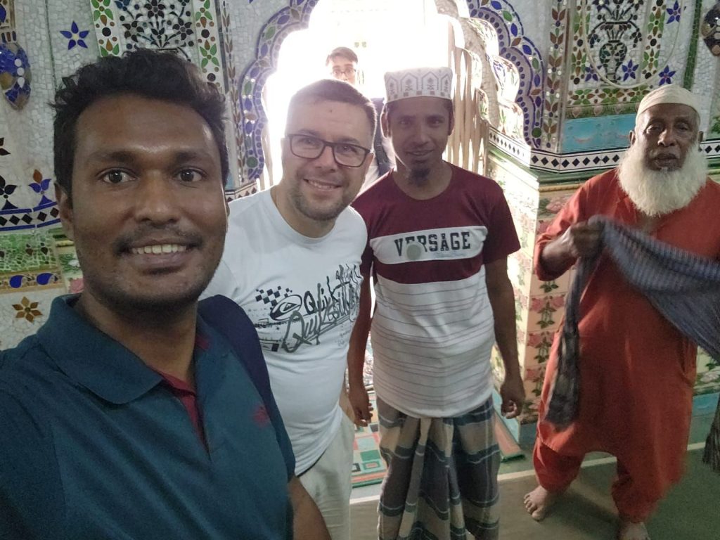 Nieopodal był chyba najważniejszy meczet w Bangladeszu – Tara. Został zbudowany w pierwszej połowie XIXw. Zupełnie nie robi wrażenia, niewielki, bez większego polotu architektonicznego. Ale dowiedziałem się, że są w nim położone płytki z Japoni. Heh.