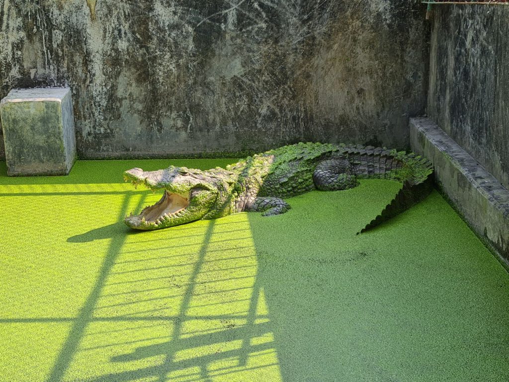 Wyruszyliśmy w końcu i płynęliśmy ok. 30min. do tzw. centrum turystycznego Karamjal. Przywitały nas małpki (podgatunek makakow). Potem oglądaliśmy zagrody służące do rozmnażania krokodyli. Były też baseny z zagrożonym wyginieciem gatunkiem żółwi (Batagur słodkowodny).