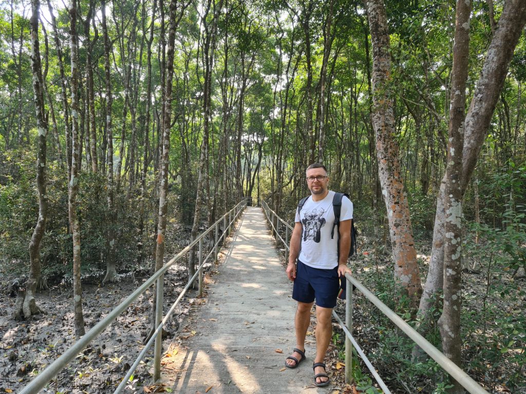 Znowu nie udało mi się pospać. O 6:30 przyjechał po mnie organizator-przewodnik, z którym miałem pojechać w lasy namotzynowe Sundarbans. Jest to druga, po Dhace, Największa atrakcja kraju. Pojechaliśmy rikszą na dworzec autobusowy, a dalej autobusem do miejscowości Mongla. 40-50km zajęło 1,5h. Droga była zła.