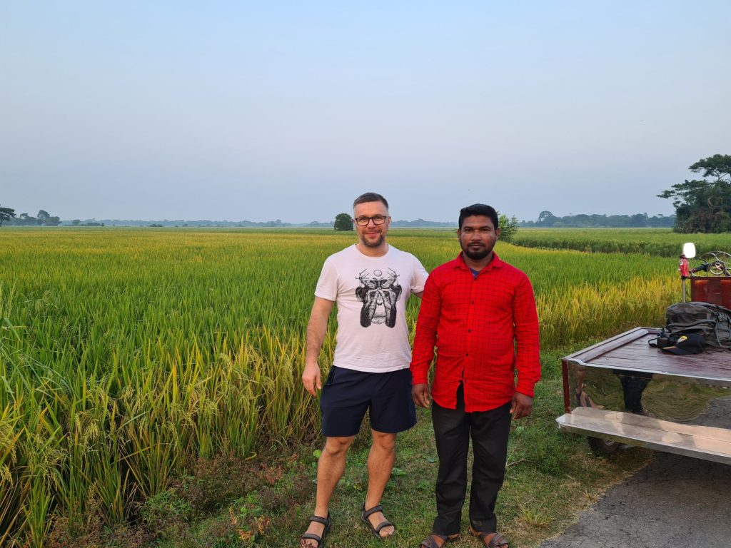 Do brzegu rzeki dojechaliśmy wraz z zachodem słońca, po drodze mijając mnóstwo pól ryżowych. Stamtąd małą łódeczką przedostaliśmy się na drugą stronę, złapaliśmy autobus powrotny do Khulna, tam jeszcze raz przeprawa przez mały kanał i rikszą dotarliśmy do centrum. Za całość zapłaciłem 80usd i dorzuciłem napiwek. Warto było!