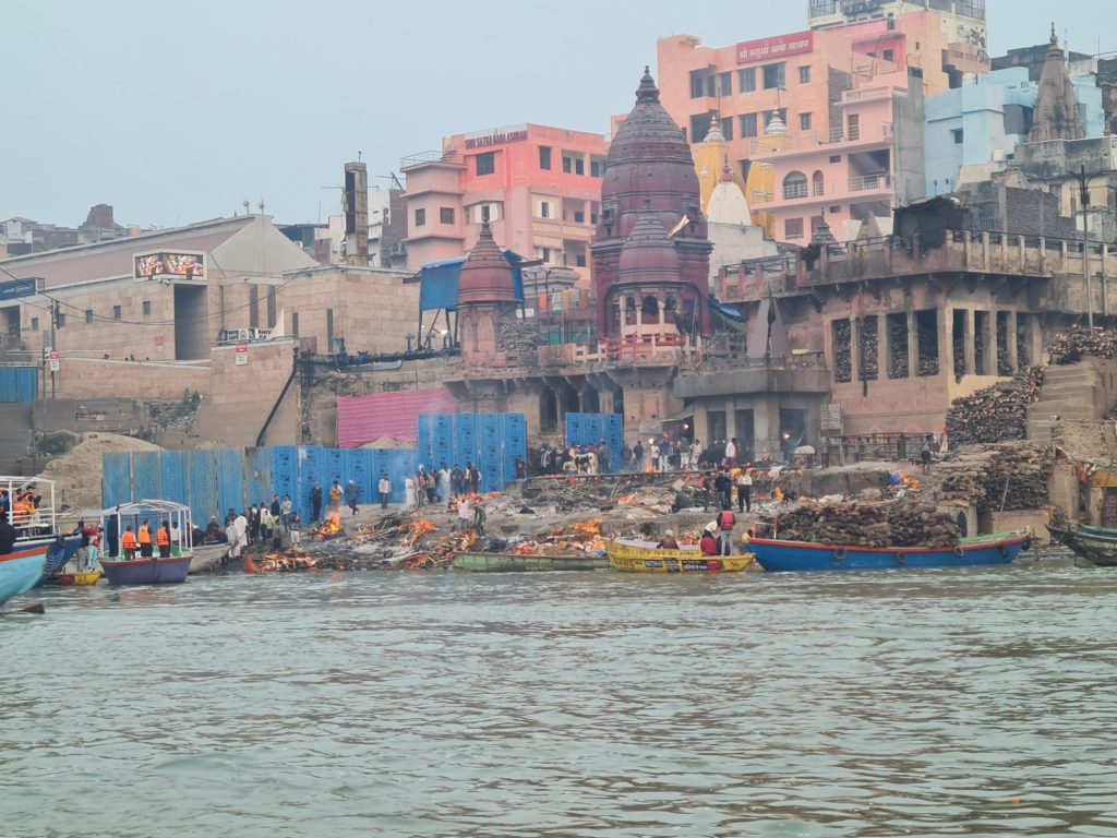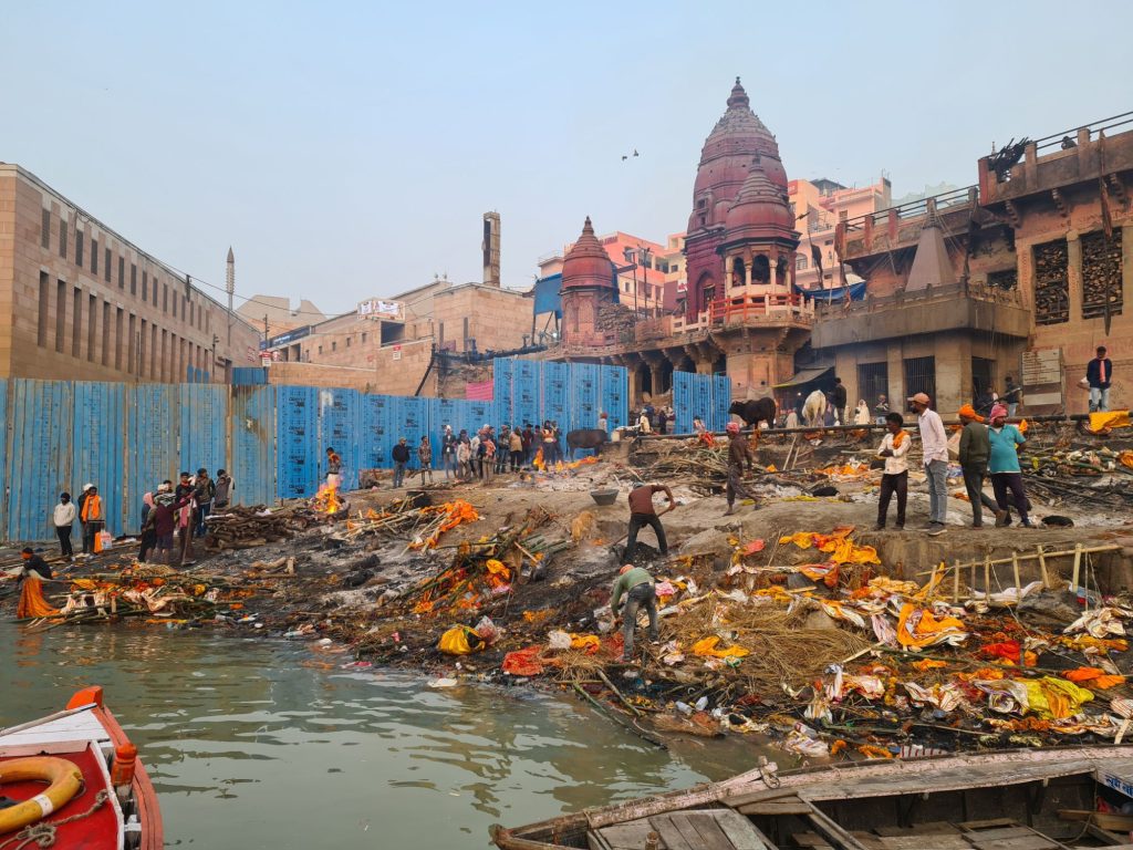 Najciekawszy punkt był najbardziej na polnocy: Manikarnika Ghat, czyli słynne tutaj krematorim na otwartym powietrzu, gdzie spala się codziennie 200-300 ciał.