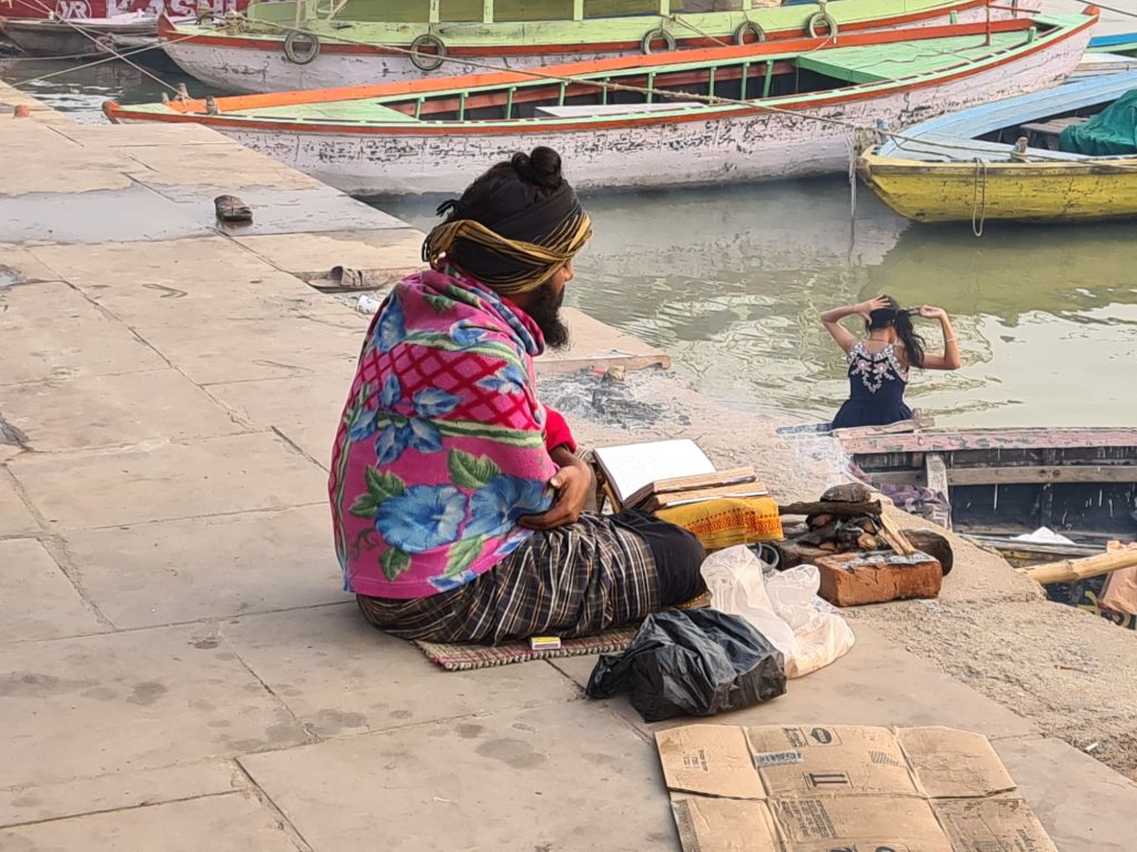 Przed powrotem do hostelu poszedłem na herbatę z widokiem na Ganges. Dołączyło do mnie 2 chłopaków z Couchsurfing, ale spotkanie nic za bardzo nie wniosło w moje życie.