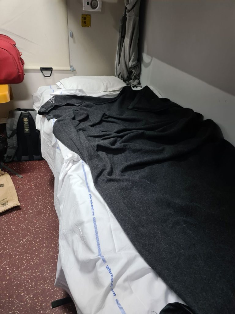 Okazało się, po chwili konsternacji, że jestem na złym dworcu! Bo tutaj było ich więcej! Zrobiłem szybki zwrot w tył, kolejny tuk tuk i całe szczęście, że druga stacja była tylko 3,5km dalej. Zdążyłem! Chwilę zajęło znalezienie ostatniego peronu i ostatniego wagonu (z 24). 23:10 wyruszylem. A wagon miło mnie zaskoczył. Mam nawet pościel i poduszkę.