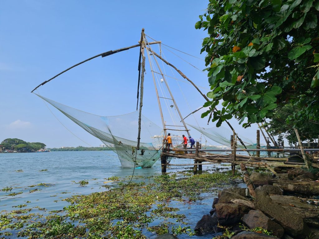 Ostatnim punktem były chińskie sieci rybackie. Misterna konstrukcja co chwilę pozwalała zanurzyć dużą sieć w wodzie i po chwili ją wynurzyć w celu wyciagniecia ryb z sieci. Metoda może nie jest zbyt efektywna, ale na pewno efektowna:).